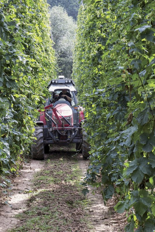 Samotná práce v chmelnici je technicky velmi náročná a ukazuje, že chmelař musí být nejen zemědělec, ale i mechanik a inovátor. A to už na jaře, kdy se musí chmel seřezat a meziřadí urovnat. „Používáme rotační brány dva a půl metru široké. Jedním přejezdem si urovnáme meziřadí, pak se chmel seřeže. Máme ještě řezačky z JZD, ale upravené, protože výrobců strojů pro chmelaře moc není,“ přibližuje praxi chmelaře Dreksler. Do výbavy rodinné chmelnice dále patří německé kultivátory Fischer, domácí stroje vlastní výroby nebo plamenová plečka od firmy Reinert – jediná svého druhu v Česku. „Možná jste si všimli, že některé chmelové rostliny mají opálené spodky. My ji (plamenovou plečku) nepoužíváme jen na defoliaci (odstranění listů), ale hlavně na plevel. I když letos už ani plamen nedával dostatečný výkon,“ doplňuje zkušenost v boji s plevelem Jirka.