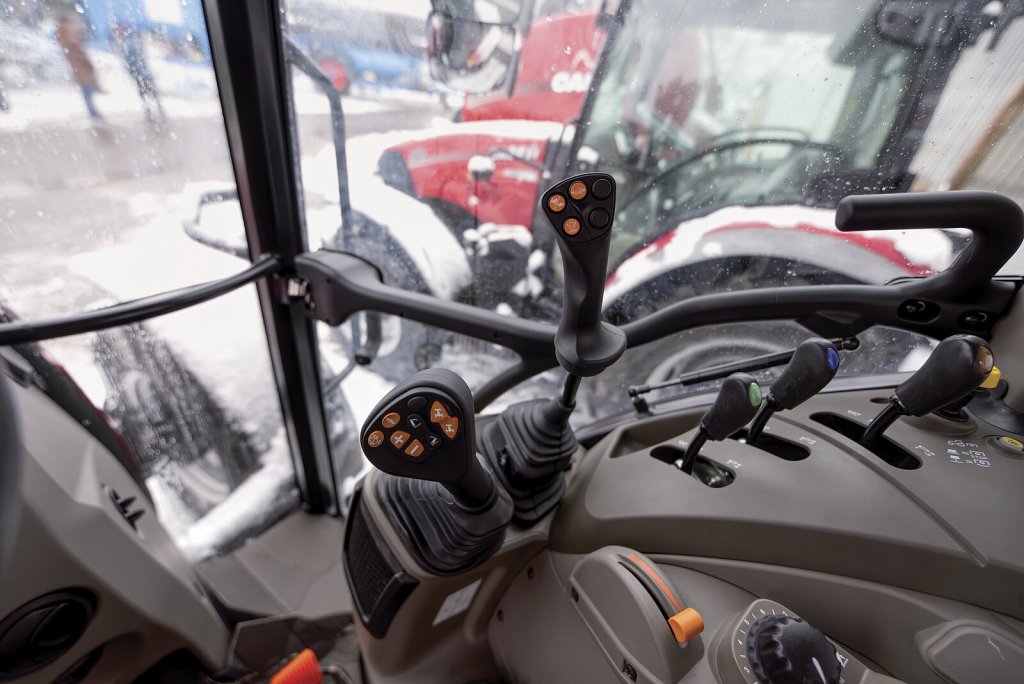 Komfort obsluhy výrazně zvyšuje i nová odpružená kabina, o niž je podle pana Novotného dnes ze strany zákazníků největší zájem. Díky ní je traktor vhodný nejen pro zemědělské podniky, ale i pro obce či komunální služby, kde se klade důraz na pohodlnou celodenní práci. Zaujala nás též tovární příprava pro čelní nakladač snadno „rozpoznatelná“ moderním joystickem, který umožňuje ovládání směru jízdy, spojky i 2° násobiče. Sadu ocení nejenom farmáři instalující nakladač přímo do nového traktoru ale i ti, kteří se pro něho rozhodnou později. V obou případech odpadá „vrtání“ a další dodatečné zásahy.