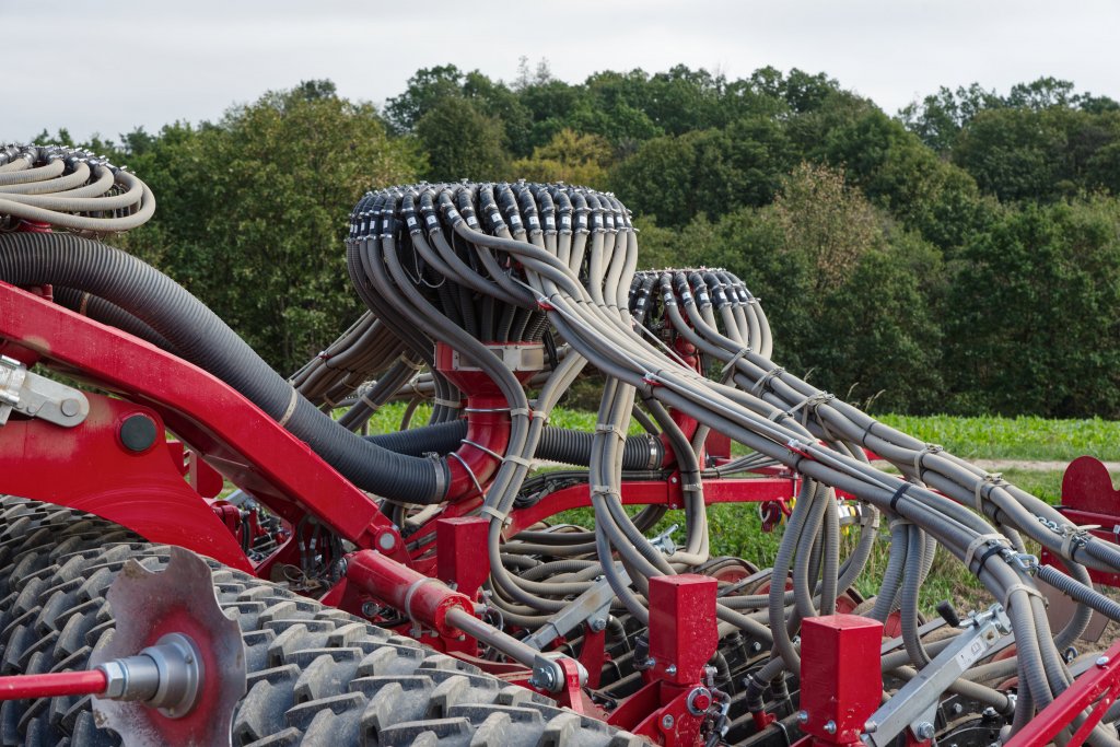 Dalším klíčovým prvkem secích strojů Focus TD je pneumatikový pěch utužující pás půdy, ve kterém se následně ukládá osivo. Díky tomu vzniká stabilní seťové lůžko s ideálním kontaktem mezi půdou a semeny, což podporuje rovnoměrné vzcházení rostlin i v náročnějších podmínkách. Pěch svým působením zajišťuje, že půda zůstává dostatečně provzdušněná a zároveň má potřebnou vlhkost v blízkosti osiva, čímž se vytvářejí optimální podmínky pro klíčení a následný růst. Jeho konstrukce je navržena tak, aby pracovala spolehlivě i při vyšších pracovních rychlostech a přizpůsobovala se různým typům půdy. Navíc díky přesnému vedení po zpracovaných pásech půdy nedochází k nadměrnému utužení okolních neobdělávaných zón, což podporuje zdravý vývoj kořenů a šetří půdní strukturu.
