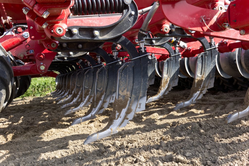 Mezi základní pracovní orgány stroje Focus patří radličky na slupicích TerraGrip, jejichž úkolem je pásově kypřit půdu před výsevem. Díky robustní konstrukci a vysoké pojistné síle pronikají půdním profilem do hloubky až 35 cm, čímž účinně rozrušují utužené vrstvy a zajišťují lepší vsakování vody i přístup vzduchu ke kořenům. Zároveň při práci vyčesávají z kořenové zóny i ze seťového lůžka posklizňové zbytky a umožňují cílené ukládání hnojiva do přesně definovaného depa – opět s možností nastavení hloubky podle aktuálních půdních podmínek nebo druhu plodiny. Tímto způsobem se živiny dostávají přímo ke kořenům, což podporuje rychlý start rostlin a jejich hlubší zakořenění. Dodejme, že konstrukce radliček zajišťuje stabilní chod i v těžších půdách a zároveň omezuje vznik hrud, takže povrch pole zůstává rovnoměrný a ideální pro následný výsev. Kromě hnojiva lze radličkami aplikovat v některých případech přímo osivo - třeba hrách či pelušku.