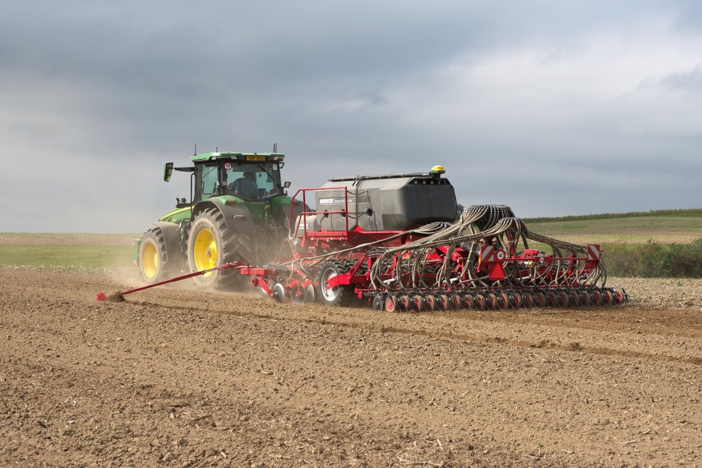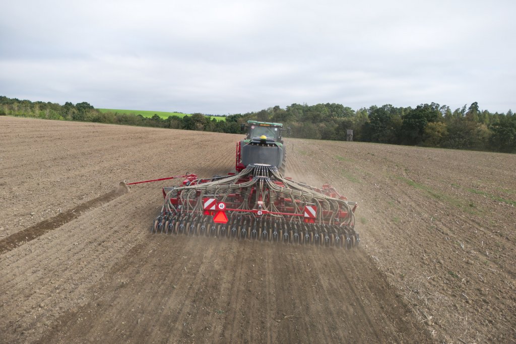 V rámci naší reportáže jsme měli možnost sledovat model Focus 6.30 TD, tedy 6m secí stroj s roztečí řádků 30 cm vybavený botkami TurboDisc. V akciové společnosti Zemspol Studénka je v provozu zhruba měsíc, před ním však měli zapůjčený podobný Focus a mají zprostředkované zkušenosti i s jinými stroji, například s 4metrovým secím strojem nebo s dalším šestimetrovým Focusem, který v regionu pracuje delší dobu. „Já jsem byl Focusem nadšený už delší dobu, protože tady v Tísku mají taky ten stroj, sice tedy čtyřmetrový. Nebo Klečka z Bartošovic má přímo šestimetrový stroj a už s ním jezdí takových sedm let. A u té přípravy jsme byli opravdu překvapeni, jak kvalitně je prováděna,“ říká na úvod pan Šimeček, který přijel se secím strojem Focus 6.30 TD zapřaženým za traktorem John Deere.
