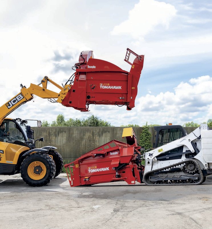 Britský výrobce Teagle Machinery se vývojem a výrobou rozdružovačů balíků zabývá již více než čtyři desetiletí. Stroje řady Tomahawk jsou dobře známé v chovech hospodářských zvířat po celém světě a využívají se nejen při nastýlání, ale také při zpracování krmiv. Modely 6100H a 6200H navazují na konstrukční koncepci stroje Telehawk uvedeného na trh v roce 2014 a přinášejí řadu technických vylepšení i širší možnosti agregace.